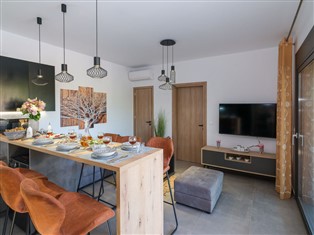 "Eleonas", 4-Zimmer-Villa 100 m². Hell, sehr komfortabel eingerichtet: grosses Wohn-/Esszimmer mit 1 Diwanbett und Sat-TV (Flachbildschirm), CD und Klimaanlage. Ausgang zum Garten, zum Schwimmbad. 3 grosse Doppelzimmer, jedes Zimmer mit 1 Doppelbett, Bad und Klimaanlage. Küche (Geschirrspüler, 4 Glaskeramikherd Platten, Toaster, Wasserkocher, Mikrowelle, Tiefkühler, elektrische Kaffeemaschine). Ausgang zum Garten. Sep. WC. Komfortable Einrichtung im Landhausstil. Terrassenmöbel, Gartengrill. Herrliche Panoramasicht auf die Landschaft. Zur Verfügung: Waschmaschine, Bügeleisen, Haartrockner. Internet (Wireless LAN, gratis). Geeignet für Familien. 1055192