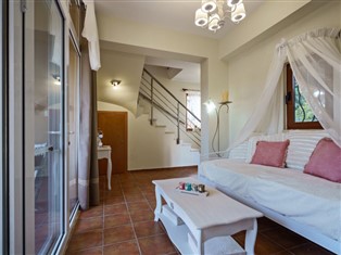 "Aclando", 5-Zimmer-Villa 120 m² auf 2 Stockwerken. Sehr schön und gemütlich eingerichtet: offenes Wohn-/Schlafzimmer mit 1 Diwanbett. Ausgang zum Balkon. 1 Doppelzimmer mit 1 Doppelbett. Ausgang zur Terrasse. 1 Kinderzimmer mit 2 Betten (90 cm, Länge 200 cm). Bad/Dusche/WC. Klimaanlage. Obergeschoss: Wohnzimmer mit Sat-TV (Flachbildschirm). 1 Doppelzimmer mit 1 Doppelbett, offenem Kamin und Sat-TV (Flachbildschirm). Ausgang zum Balkon. Offene Küche (Backofen, Geschirrspüler, 4 Glaskeramikherd Platten, Mikrowelle, elektrische Kaffeemaschine) mit Esstisch. Dusche/WC. Klimaanlage. 2 kleine Balkone, Terrasse. Terrassenmöbel, Balkonmöbel. Schöne Sicht auf die Berge, das Schwimmbad und den Garten. Zur Verfügung: Waschmaschine, Wäschetrockner, Safe, Bügeleisen, Haartrockner. Internet (Wireless LAN, gratis). 1055192
