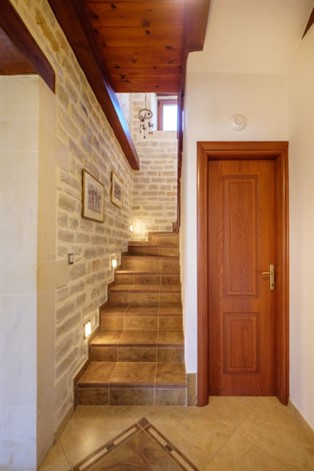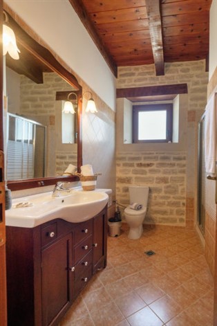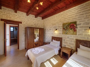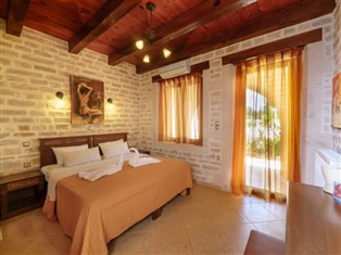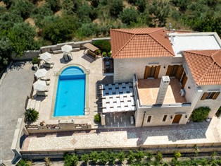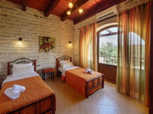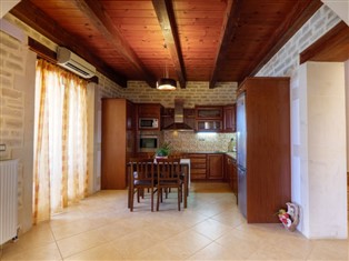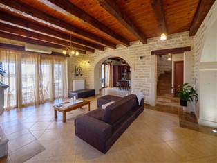 "Erofili", 5-Zimmer-Villa 190 m² auf 2 Stockwerken. Geräumig und hell, komfortabel und schön eingerichtet: offenes Wohn-/Esszimmer mit offenem Kamin, Esstisch und TV. 1 Doppelzimmer mit 2 Betten. Ausgang zur Terrasse. Offene Küche (Backofen, Geschirrspüler, 4 Glaskeramikherd Platten, Mikrowelle, elektrische Kaffeemaschine) mit kleinem Esstisch. Dusche/WC. Klimaanlage. Obergeschoss: (geländerlose Treppe) 1 Doppelzimmer mit 1 Doppelbett, Bad/WC und Sprudelbad. Ausgang zum Balkon. 2 Doppelzimmer, jedes Zimmer mit 2 Betten. Ausgang zum Balkon. Bad/WC. Klimaanlage. 2 Balkone, grosse Terrasse teilweise überdacht. Gartengrill. Schöne Sicht auf die Landschaft. Zur Verfügung: Waschmaschine, Safe, Bügeleisen, Haartrockner. Internet (Wireless LAN, gratis). Geeignet für Familien. 1041 K 91002888201