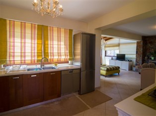 "Nitsa", 4-Zimmer-Villa 185 m² auf 3 Stockwerken. Geräumig, abgeschrägt, sehr komfortabel und geschmackvoll eingerichtet: grosses Wohn-/Esszimmer mit offenem Kamin, Esstisch und Sat-TV (Flachbildschirm), CD, Stereoanlage, DVD und Klimaanlage. Ausgang zum Garten, zur Veranda. Offene Küche (Backofen, Geschirrspüler, 4 Glaskeramikherd Platten, Toaster, Wasserkocher, Mikrowelle, elektrische Kaffeemaschine) mit Esstisch. Ausgang zum Garten, zur Veranda. Unteres Geschoss: 1 Doppelzimmer mit 2 Betten und Klimaanlage. Ausgang zum Garten. 1 Doppelzimmer mit 1 Doppelbett und Klimaanlage. Ausgang zum Garten. Kochnische (4 Glaskeramikherd Platten) mit Esstisch. Dusche/WC, Hydromassage-Dusche. Obergeschoss: abgeschrägter Zwischenstock mit 1 Doppelbett, Dusche/WC und Hydromassage-Dusche. Ausgang zum Balkon. Terrasse, Garten. Balkonmöbel, Gartengrill, Loggia, Sitzplatz. Schöne Sicht auf den Garten. Zur Verfügung: Waschmaschine, Bügeleisen, Haartrockner. Internet (Wireless LAN, gratis). Bitte beachten: Nichtraucher-Haus. Rauchmelder, Feuerlöscher. 1039E60000355701