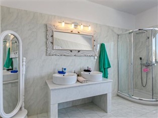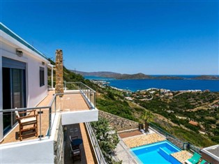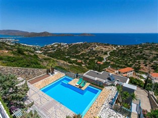 Elounda 67 km von Heraklion: Sehr moderne, alleinstehende, sehr luxuriöse Villa "Elounda Senses", auf 2 Stockwerken, umgeben von Bäumen. Am Ortsrand, 3.5 km vom Zentrum von Elounda, ruhige, sonnige, erhöhte Lage auf einem Hügel, verkehrsberuhigte Zone, 500 m vom Meer, 1.1 km vom Strand. Zur Alleinbenutzung: Grundstück 2 000 m2 (eingezäunt), gepflegter Garten mit Blumen und Bäumen, Schwimmbad eckig (8 x 5 m, 150 cm tief, saisonale Verfügbarkeit: 01.Apr. - 31.Okt.) mit Innentreppe. Wäschewechsel 2 mal wöchentlich. Handtuchwechsel 2 mal wöchentlich. Wohnungsreinigung 2 mal wöchentlich. Parkplatz beim Haus. Einkaufsgeschäft 3.6 km, Lebensmittelgeschäft 3.6 km, Supermarkt 3.6 km, Restaurant 1.4 km, Bar 2.5 km, Café 2.5 km, Sandstrand "Hiona" 3.1 km, Kieselstrand "Elounda Breeze Beach" 1.1 km. Golfplatz (18 Loch) 47 km, Tennis 8 km. Nahe gelegene Sehenswürdigkeiten: Spinalonga Island 8.5 km. Bekannte Seen in der Umgebung sind gut erreichbar: Voulismeni 6.7 km. Wandergebiete: Havgas Gorge 13 km. Bitte beachten: Fahrzeug empfohlen. Geeignet für Familien, Babyausstattung auf Anfrage (inkl.). Jugendgruppen nur auf Anfrage. Es kann auf Anfrage ein Transfer ab Flughafen zum Ferienobjekt organisiert werden.