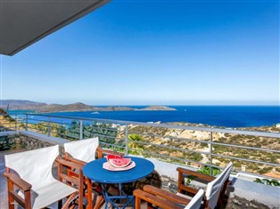 "Elounda Senses", 4-Zimmer-Villa 180 m² auf 2 Stockwerken. Sehr modern und luxuriös eingerichtet: grosses Wohn-/Esszimmer mit offenem Kamin, Esstisch und Sat-TV (Flachbildschirm), CD, DVD und Klimaanlage. Ausgang zum Balkon, zur Terrasse, zum Schwimmbad. 1 grosses Doppelzimmer mit 1 Doppelbett und Klimaanlage. Ausgang zum Balkon, zum Schwimmbad. Grosse, offene Küche (Backofen, Geschirrspüler, 4 Glaskeramikherd Platten, Toaster, Wasserkocher, Mikrowelle, elektrische Kaffeemaschine). Ausgang zur Terrasse, zum Schwimmbad. Bad/WC. Obergeschoss: (geländerlose Treppe) 1 grosses Doppelzimmer mit 1 Doppelbett und Klimaanlage. Ausgang zum Balkon. 1 Doppelzimmer mit 2 Betten und Klimaanlage. Ausgang zum Balkon. Bad/Dusche/WC, Whirlbadewanne. Grosser Balkon, 2 grosse Terrassen, Garten. Terrassenmöbel, Balkonmöbel, Gartengrill (mobil), Liegestühle, Loggia, Sitzplatz. Herrliche Panoramasicht auf das Meer, das Schwimmbad und den Garten. Zur Verfügung: Waschmaschine, Safe, Bügeleisen, Haartrockner. Internet (Wireless LAN, gratis). Bitte beachten: Nichtraucher-Haus. Rauchmelder, Feuerlöscher. 1040K123K0318000