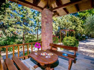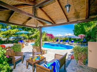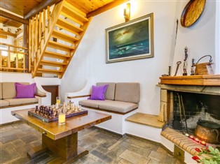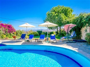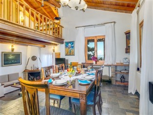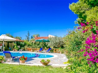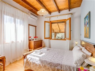 "Agapi Villa", 4-Zimmer-Villa 120 m². Sehr komfortabel eingerichtet: Esszimmer mit Esstisch und Klimaanlage. Wohnzimmer mit 1 Diwanbett, offenem Kamin, Esstisch, Sat-TV, CD, DVD und Klimaanlage. Ausgang zum Garten, zum Schwimmbad. 2 Doppelzimmer, jedes Zimmer mit 1 franz. Bett, TV und Klimaanlage. 1 Zimmer mit 1 Bett und TV. Offene Küche (Backofen, Mikrowelle, Grill) mit Esstisch, offenem Kamin. Bad, Bad/WC, Bad oder Dusche/WC, Bad/Dusche/Bidet/WC. Obergeschoss: offenes kleines Büro mit 1 Bett. Holzböden. Garten. Terrassenmöbel, Gartengrill, Liegestühle. Sehr schöne Sicht auf die Berge, das Schwimmbad und den Garten. Zur Verfügung: Waschmaschine, Safe, Bügeleisen, Fliegengitter, Haartrockner. Internet (Wireless LAN, gratis). Parkplatz. Geeignet für Familien. 1039?10000012800