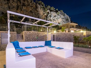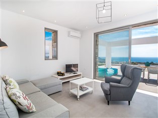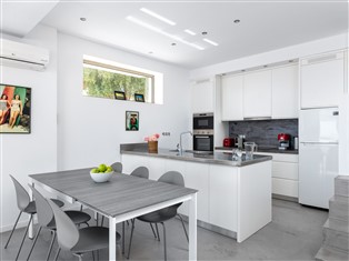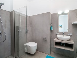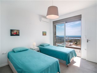 Villa, 190 m² Wohnfläche, 4 Schlafzimmer, 4 Badezimmer, für 8 Personen. Parterre: (Wohnzimmer (TV (Flatscreen, Satellit, smart TV), Klimaanlage), Küche (Wasserkocher, Toaster, Kochherd, Kaffeemaschine, Backofen, Mikrowelle, Spülmaschine, Kühl-/Gefrierkombination), Schlafzimmer mit Badezimmer (Doppelbett, Dusche, Waschbecken, Toilette, Klimaanlage), Toilette)