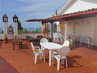 7-Zimmer-Wohnung 200 m² im 1. Stock. Komfortabel und geschmackvoll eingerichtet: abgeschrägtes Wohn-/Esszimmer mit TV. Ausgang zur Terrasse. Grosses Esszimmer mit Esstisch und TV. Ausgang zur Terrasse. 1 Zimmer mit 3 Betten. 1 abgeschrägtes Zimmer mit 2 Betten und Waschbecken. Ausgang zum Balkon. 2 Zimmer, jedes Zimmer mit 1 Bett und 1 Doppelbett. 1 Doppelzimmer. Grosse Kochnische (5 Kochplatten, Backofen, Geschirrspüler, Mikrowelle, Tiefkühler, elektrische Kaffeemaschine). Bad/Bidet/WC, 3 Duschen/Bidet/WC. Heizung (extra). Heizung nur verfügbar von 01.11. bis 31.03. Grosse Terrasse 90 m² teilweise überdacht. Terrassenmöbel. Sehr schöne Panoramasicht auf das Meer, die Berge und das Tal. Zur Verfügung: Waschmaschine, Haartrockner. Internet (Wireless LAN, gratis). Parkplatz. 1 Haustier/Hund erlaubt. Das Haus besteht aus 2 individuellen Wohnungen, über eine Terrasse miteinander verbunden (jede Wohnung verfügt über 2 Zimmer, Wohnraum und über 2 Badezimmer).