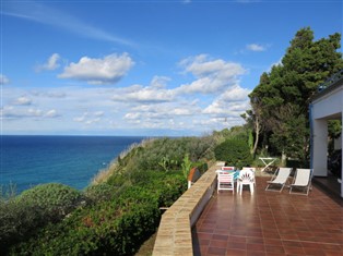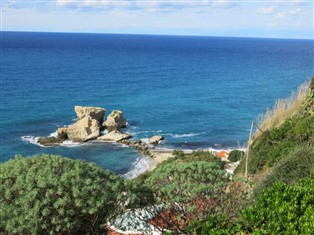 Zweifamilienhaus "Sulla Scogliera", 40 m.ü.M., umgeben von Bäumen und Feldern. Im Ortsteil Riaci, 2.5 km vom Zentrum von Tropea, 10 km vom Zentrum von Capo Vaticano, 30 km vom Zentrum von Vibo Valenzia, erhöhte Lage am Hang, 700 m vom Meer, direkter Zugang zum Strand. Zur Mitbenutzung: terrassierter Garten, 3 ha mit Bäumen, Naturgarten, Obstgarten. 100 m lange Zufahrt (Naturweg). Supermarkt 2.5 km, Restaurant, Bar 700 m, Bahnstation "Ricadi" 1 km, Fähre "Tropea - Isole Eoliche" 2.5 km, Sandstrand 700 m. Bitte beachten: Der Besitzer wohnt auf dem gleichen Grundstück. Der Besitzer wohnt im selben Haus. Eisenbahnlinie 50 m vom Haus.