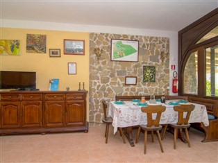 5-Zimmer-Villa 200 m² auf 2 Stockwerken. Geräumig und hell, teilweise renoviert im Jahre 2019, komfortabel und schön eingerichtet: 1 grosses Zimmer mit 4 Betten, Dusche/Bidet/WC, TV, Flachbildschirm, Klimaanlage und Warmluftheizung. Ausgang zum Gartensitzplatz. Grosses Wohn-/Esszimmer mit Esstisch, Küchenblock und TV. Ausgang zum Gartensitzplatz. Kochnische (4 Kochplatten, Backofen, Geschirrspüler, Mikrowelle, Tiefkühler, Grill) mit Esstisch. Obergeschoss: (Aussentreppe) 3 Doppelzimmer, jedes Zimmer mit Dusche/Bidet/WC und TV (Flachbildschirm), Klimaanlage. Ausgang zur Terrasse. Grosse Terrasse 150 m², Gartensitzplatz, grosser Garten. Terrassenmöbel, Gartengrill, Liegestühle. Schöne Sicht auf den Garten und die Landschaft. Zur Verfügung: Waschmaschine, Bügeleisen, Fliegengitter, Haartrockner. Internet (Wireless LAN, gratis). Parkplatz. Bitte beachten: geeignet für Familien. Feuerlöscher, kein Fahrstuhl.