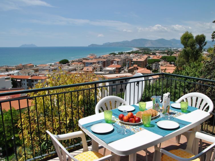 Lage: im Ortszentrum von Sperlonga, ruhige, sonnige Lage im Grünen. Aussicht von der Wohnung auf das Meer und die Ortschaft.