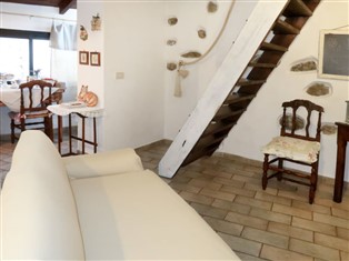 "Soppalco (DOA120)", 2-Zimmer-Wohnung 35 m² auf 2 Stockwerken. Rustikal und gemütlich eingerichtet: Wohn-/Esszimmer mit Esstisch und TV. Kochnische (Mini-Backofen, 4 Flammen, Toaster, Wasserkocher). Dusche/WC. Obergeschoss: (geländerlose Treppe) 1 abgeschrägtes, offenes Zimmer mit 1 franz. Bett (140 cm). G-Heizung. Kleine Terrasse. Terrassenmöbel. Zur Verfügung: Internet (Wireless LAN, gratis). Bitte beachten: 1 Haustier/Hund erlaubt. Eigener Eingang. CITRA: 008029-AGR-0008