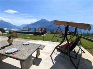 2-Zimmer-Wohnung 50 m², im Erdgeschoss. Zweckmässig eingerichtet: Wohn-/Esszimmer mit offenem Kamin, Esstisch und Sat-TV. Ausgang zur Terrasse. 1 Doppelzimmer. Offene Küche (Backofen, Geschirrspüler, Gasherd, 4 Flammen, Toaster, Wasserkocher, Mikrowelle, elektrische Kaffeemaschine). Ausgang zur Terrasse. Dusche/Bidet/WC. G-Heizung. Natursteinboden. Grosse Terrasse teilweise überdacht, Gartensitzplatz. Terrassenmöbel, Gartengrill, Liegestühle (2). Herrliche Panoramasicht auf den See, die Berge und das Tal. Zur Verfügung: Kinderhochstuhl, Babybett bis 2 Jahre. Internet (Wireless LAN, gratis). Bitte beachten: eigener Eingang. CIR: 013218-CNI-00032