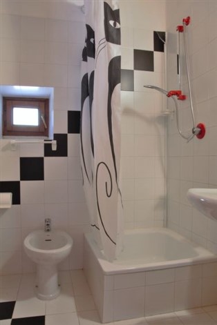 1-Zimmer-Wohnung 51 m² auf 2 Stockwerken im 1. Stock. Zweckmässig eingerichtet: Wohn-/Schlafzimmer mit 1 Diwanbett, 1 Doppeldiwanbett, Esstisch und Sat-TV. Ausgang zum Balkon. Offene Küche (4 Flammen, Mikrowelle, elektrische Kaffeemaschine). Obergeschoss: (geländerlose Treppe) abgeschrägte Galerie mit 1 Doppelbett. Dusche/Bidet/WC. Klimaanlage, Warmluftheizung (extra). Heizung nicht in allen Räumen. Balkon. Balkonmöbel. Fernsicht auf den See. Zur Verfügung: Waschmaschine. Parkplatz beim Haus. Bitte beachten: Nichtraucher-Unterkunft. 1 Haustier/Hund erlaubt.