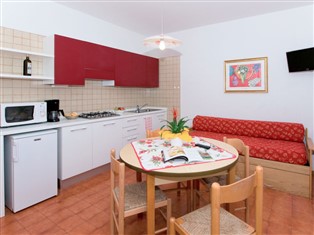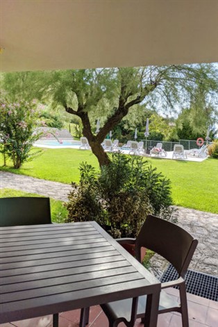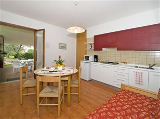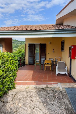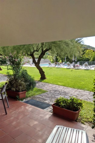 "Comfort", 2-Zimmer-Wohnung 50 m², im Erdgeschoss. Komfortabel eingerichtet: Wohn-/Schlafzimmer mit 1 Diwanbett, 1 Ausziehbett, Esstisch und Sat-TV. Ausgang zur Terrasse. 1 Doppelzimmer. Offene Küche (Gasherd, 4 Flammen, Mikrowelle, elektrische Kaffeemaschine). Dusche/Bidet/WC. G-Heizung, Klimaanlage. Heizung nur verfügbar von 01.10. bis 30.04. Terrasse überdacht. Terrassenmöbel, Liegestühle. Sicht auf das Schwimmbad, den Garten und die Landschaft. Zur Verfügung: Safe, Kinderhochstuhl. Internet (Wireless LAN, gratis). Parkplatz (1 Auto). Bitte beachten: Nichtraucher-Unterkunft. Eigener Eingang.