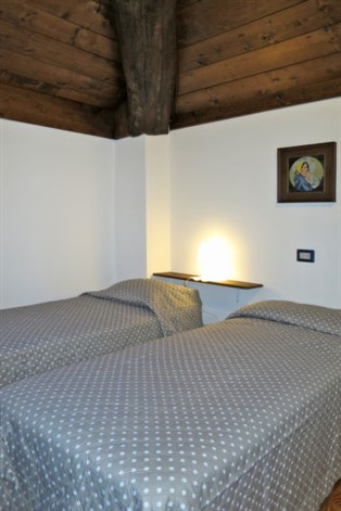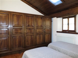 3-Zimmer-Hausteil, 2 Etagen, ca. 80 m². Erdgeschoss: Wohnraum mit Sitzgruppe, Essplatz, Küchenzeile (4 Flammen, Backofen, Mikrowelle, Kühl-/Gefrierkombination, Kaffeemaschine, Kaffeekapselmaschine, Wasserkocher, Toaster) und Terrassenausgang. Dusche/WC. Vom Wohnraum Treppe ins Dachgeschoss: Schlafzimmer mit franz. Bett (Bett 1,60 m breit) und schönem Blick auf den Lago di Piano. Zweibettzimmer. CIR: 013047-CNI-00004