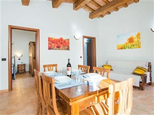 Vanuit de eetkeuken in de Porcini flat heb je een prachtig uitzicht op de omgeving. Het buitenzwembad wordt een binnenzwembad in de lente en de herfst, zodat gasten in mei en september een duik kunnen nemen, net als het bubbelbad. Dankzij de ligging is de temperatuur zeer aangenaam tijdens de warme zomermaanden. Op het terras is er een barbecue, gedeeld met andere gasten, ideaal om buiten te koken onder het genot van een lekker glas rode wijn uit de omgeving. Je hebt gratis toegang tot de speeltuin.