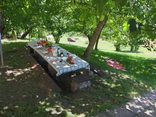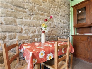 Ferienwohnung / Bauernhaus (Ländlich, Auf einem Landgut) , 50 m² Wohnfläche, 1 Schlafzimmer, 1 Badezimmer, für 3 Personen. Parterre: (Wohnzimmer (TV), offene Küche (Kochplatte, Kaffeemaschine, Kühl-/Gefrierkombination), Schlafzimmer mit Badezimmer (Einzelbett, Einzelklappbett , Doppelbett, Dusche, Waschbecken, Toilette, Bidet))