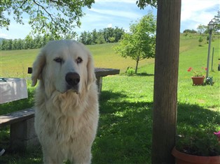 Es gibt zwei süße Hunde im Betrieb, die zum Wandern gehen möchten. Die Hunde den Weg zeigen! Es gibt ein paar Schweine, Kühe und Esel im Agriturismo.