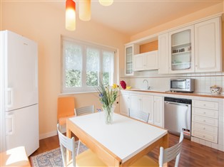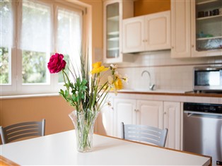 Eine stilvolle Unterkunft für eine große Gruppe von 10 Personen in einem eher klassischen Zuhause. Das Ferienhaus ist in 2 miteinander verbundene Wohnungen unterteilt.