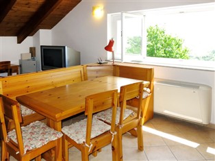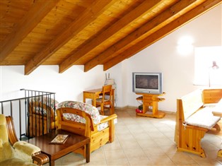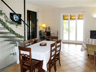 6-Zimmer-Haus, 2 Etagen, ca. 220 m². Erdgeschoss: Großer Wohnraum mit Sitzgruppe, Essplatz, Kaminofen, Terrassenausgang. Küche (5 Flammen, Backofen, Mikrowelle, Geschirrspüler, Kühl-/Gefrierkombination, Kaffeemaschine, Toaster). Schlafzimmer mit franz. Bett (1,60 m breit), Terrassenausgang. Zweibettzimmer, Terrassenausgang. Bad/Dusche/Doppelwaschbecken/WC. Vom Wohnraum Treppe ins Obergeschoss (hohe Dachbalkenkonstruktion, nicht störende Dachschräge): Großer Wohn-/Schlafraum (offen zur Treppe) mit Doppelbettcouch, Sitzgruppe, Küchenzeile (4 Flammen, Kühl-/Gefrierkombination) mit weiterem Essplatz (Eckbank). Doppelzimmer. Schlafzimmer mit Doppelausziehbett und Etagenbett. Dusche/WC. Kleine Dachterrasse (Mobiliar). Vom Wohnraum im Erdgeschoss Treppe ins Tiefparterre: Dusche/WC. Zugang zur Garage, sowie Waschküche. Hinweis: Bei Buchung zum Preis für 4 Personen bleiben 2 Schlafzimmer verschlossen. CIR: 00506600002