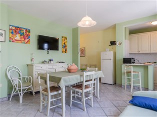 3-Zimmer-Wohnung 85 m². Komfortabel eingerichtet: Wohn-/Esszimmer mit 1 Diwanbett und Sat-TV. Ausgang zur Terrasse. 1 Zimmer mit 2 Betten. 1 Doppelzimmer. Küche (4 Kochplatten, Backofen, Tiefkühler). Bad/Bidet/WC. Klimaanlage, Warmluftheizung. Terrasse 40 m². Terrassenmöbel. Schöne Panoramasicht auf das Meer. Zur Verfügung: Haartrockner. Parkplatz Nr. 1. Geeignet für Familien.