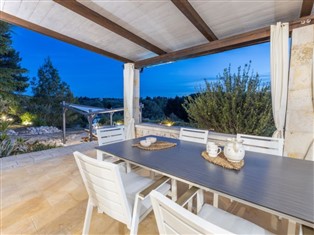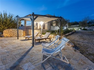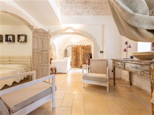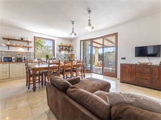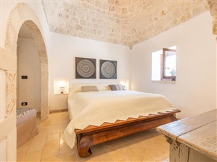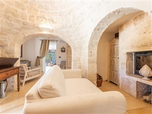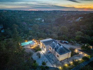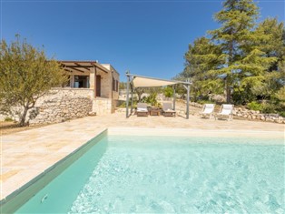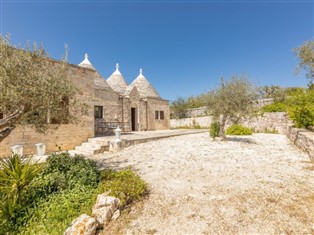 "Trulli Oasis", 3-Zimmer-Villa 75 m². Rustikal und gemütlich eingerichtet: Wohn-/Esszimmer mit 1 Diwanbett und Sat-TV (Flachbildschirm). Ausgang zum Garten. 1 offenes Doppelzimmer. 1 offenes Zimmer mit 1 Doppelbett und 1 Schlafmöglichkeit. Kochnische (4 Kochplatten, Backofen, Geschirrspüler, Mikrowelle, Tiefkühler). Dusche/Bidet/WC. Keine Heizmöglichkeit. Gartensitzplatz, Garten. Terrassenmöbel, Gartengrill, Liegestühle. Zur Verfügung: Waschmaschine, Bügeleisen, Fliegengitter, Haartrockner. Internet (Wireless LAN, gratis). Parkplatz (1 Auto). BA07203691000012805