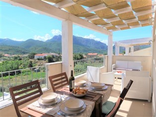 "Home Sweet Home", 3-Zimmer-Wohnung 50 m² im 1. Stock. Offenes Wohn-/Esszimmer mit 1 Diwanbett, Digital-TV, Flachbildschirm und Klimaanlage. Ausgang zur Terrasse. 1 Doppelzimmer mit Klimaanlage. Ausgang zur Terrasse. 1 Zimmer mit 1 x 2 Etagenbetten. Küche (Backofen, Geschirrspüler, 4 Induktionskochplatten, Toaster, Wasserkocher, Mikrowelle, Tiefkühler). Ausgang zur Terrasse. Dusche/Bidet/WC. Klimaanlage, Warmluftheizung. Terrassenmöbel. Sicht auf das Tal. Zur Verfügung: Waschmaschine. Geeignet für Familien. R0517