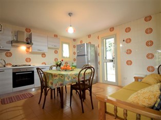 "Rosa dei Venti del Sud", 3-Zimmer-Doppelhaushälfte 92 m², im Erdgeschoss. Einfach und zweckmässig eingerichtet: Wohnzimmer mit 1 Doppeldiwanbett (140 cm), Sat-TV (Flachbildschirm). Ausgang zum Garten. 1 Doppelzimmer mit Ventilator. 1 Zimmer mit 1 x 2 Etagenbetten. Küche (4 Kochplatten, Backofen, Toaster, Wasserkocher, Tiefkühler). Ausgang zum Gartensitzplatz. Dusche/Bidet/WC. Grosser Gartensitzplatz 15 m², überdacht. Terrassenmöbel, Gartengrill. Zur Verfügung: Waschmaschine, Bügeleisen, Fliegengitter, Haartrockner. Internet (Wireless LAN, gratis). Parkplatz (1 Auto).