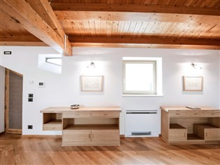 2-Zimmer-Wohnung 88 m² im 2. Stock. Luxuriös und mit viel Holz eingerichtet: abgeschrägtes Wohn-/Esszimmer, Deckenhöhe 300 - 360 cm mit 1 Doppeldiwanbett und Sat-TV (Flachbildschirm), Stereoanlage, DVD und Klimaanlage. 1 abgeschrägtes, offenes Doppelzimmer, Deckenhöhe 165 - 315 cm mit TV (Flachbildschirm), Klimaanlage. Küche (4 Kochplatten, Backofen, Geschirrspüler, Mikrowelle, elektrische Kaffeemaschine) mit Esstisch, TV (Flachbildschirm). Dusche/Bidet/WC. Heizung, Klimaanlage, Warmluftheizung (extra). Heizung nur verfügbar von 01.12. bis 31.03. Parkettboden. Zur Verfügung: Waschmaschine, Wäschetrockner, Telefon, Bügeleisen, Kinderhochstuhl, Babybett bis 2 Jahre (extra), Haartrockner. Internet (Wireless LAN, gratis). Bitte beachten: Nichtraucher-Haus. Kein Fahrstuhl. CIR:19088006C218439