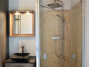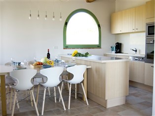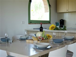 Ferienwohnung (Ländlich) , 82 m² Wohnfläche, 3 Schlafzimmer, 4 Badezimmer, für 8 Personen. Parterre: (Wohnzimmer (Sitzecke), Wohnküche (Kochherd (4 Kochplatten), Kaffeemaschine, Backofen, Mikrowelle, Spülmaschine, Waschmaschine), Schlafzimmer (Doppelbett), Schlafzimmer (2x Etagenbett), Schlafzimmer (Doppelbett), Badezimmer (Dusche, Waschbecken), Badezimmer (Dusche, Waschbecken), Badezimmer (Dusche, Waschbecken), Badezimmer (Dusche, Toilette), Toilette (Toilette), Klimaanlage, Terrasse, Kinderbett)