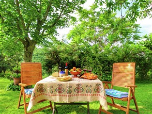 Mulino ist eine schlicht eingerichtete, aber gleichzeitig komfortable Ferienwohnung mit eigenem Eingang und Blick auf den Garten.