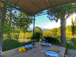 Die Einrichtung ist rustikal und typisch toskanisch mit Holzbalken an der Decke. Das Gemeinschaftsschwimmbad liegt 250 m von der Wohnung entfernt in einem schönen, gepflegten Garten. Es gibt Sonnenliegen und einen Sonnenschirm. Jede Wohnung hat eine eigene Terrasse mit herrlichem Blick auf die toskanische Landschaft. Der Eigentümer der Immobilie wohnt auch auf dem Grundstück.