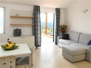 2-Zimmer-Wohnung 55 m². Hell, schön und geschmackvoll eingerichtet: Wohnzimmer mit 1 Doppeldiwanbett und Sat-TV. Ausgang zur Terrasse. 1 Doppelzimmer. Kochnische (4 Kochplatten, Backofen, Geschirrspüler, Tiefkühler) mit Esstisch. Dusche/Bidet/WC. Heizung. Terrasse 20 m². Sicht auf das Meer und die Ortschaft. Parkplatz. Bitte beachten: Nichtraucher-Unterkunft. 1 Haustier/Hund erlaubt.