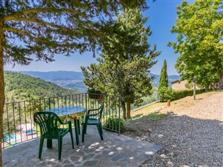 "Madonna", 5-Zimmer-Wohnung 104 m², im Erdgeschoss. Rustikal und stilvoll eingerichtet: Wohnzimmer mit 1 Diwanbett und Sat-TV. Esszimmer. 1 Doppelzimmer mit Dusche/Bidet/WC. 1 Doppelzimmer mit 2 Betten und sep. WC. 1 Zimmer mit 2 Betten. Kochnische (4 Kochplatten, Backofen, Geschirrspüler, Tiefkühler). Dusche/Bidet/WC. G-Heizung. Garten 150 m². Terrassenmöbel, Gartengrill. Schöne Sicht auf die Landschaft. Parkplatz. Bitte beachten: Nichtraucher-Unterkunft. Bitte beachten Sie: Das Zimmer mit Schlafdiwan liegt am Innenhof.