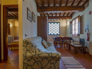 "Leonardo - Borgo Fontana", 3-Zimmer-Wohnung 60 m², im Erdgeschoss. Geräumig, geschmackvoll und gemütlich eingerichtet: 1 Doppelzimmer. 1 Zimmer mit 2 Betten. Wohnküche (4 Kochplatten, Backofen, Geschirrspüler, elektrische Kaffeemaschine) mit Esstisch, 1 Doppeldiwanbett und Sat-TV. Ausgang zum Garten, zur Terrasse. Dusche/WC. Heizung, Klimaanlage (extra). Natursteinboden. Gartensitzplatz. Terrassenmöbel, Loggia. Schöne Panoramasicht auf die Landschaft. Zur Verfügung: Internet (Wireless LAN, gratis). Bitte beachten: 1 Haustier/Hund erlaubt. Eigener Eingang.