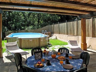2-Zimmer-Haus 40 m² auf 2 Stockwerken. Schön und gemütlich eingerichtet: Wohn-/Esszimmer mit 1 Doppeldiwanbett, Esstisch und Sat-TV. Ausgang zur Terrasse. Kochnische (Backofen, Geschirrspüler, 4 Flammen, Toaster, Mikrowelle, Tiefkühler, elektrische Kaffeemaschine). Dusche/WC. Obergeschoss: (geländerlose Treppe) abgeschrägte, offene Galerie mit 1 Doppelbett. E-Heizung, Klimaanlage. Holzböden, Natursteinböden. 2 Terrassen überdacht. Terrassenmöbel, Gartengrill, Liegestühle (4), Abstellkammer. Schöne Sicht auf die Berge, die Landschaft und den Wald. Zur Verfügung: Waschmaschine, Bügeleisen, Fliegengitter, Haartrockner. Internet (Wireless LAN, gratis). Parkplatz (eingezäunt) beim Haus. Bitte beachten: Nichtraucher-Unterkunft. 1 Haustier/Hund erlaubt.