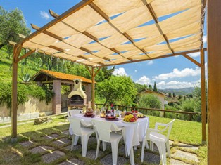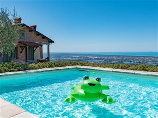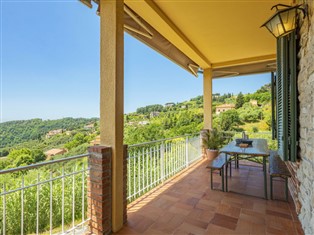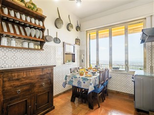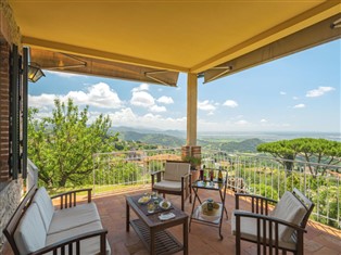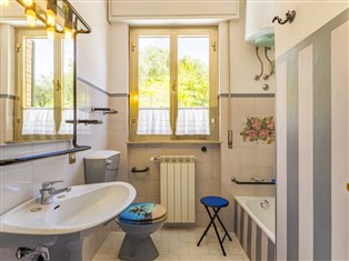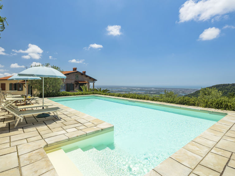 5-Zimmer-Haus 160 m², im erhöhten Erdgeschoss. Zweckmässig und antik eingerichtet: Wohn-/Esszimmer mit offenem Kamin, Esstisch und Sat-TV. Ausgang zur Terrasse. 1 Zimmer mit 2 Betten (80 cm), Waschbecken und sep. WC. 1 Zimmer mit 1 Doppelbett, Waschbecken und sep. WC. 1 Zimmer mit 1 Doppelbett. 1 Zimmer mit 1 Bett (80 cm). Küche (Backofen, Geschirrspüler, 4 Flammen, Toaster, Wasserkocher, Mikrowelle, Tiefkühler, elektrische Kaffeemaschine) mit offenem Kamin und Esstisch. Ausgang zum Garten. Bad/Bidet/WC, Dusche/Bidet/WC. G-Heizung. Heizung nur verfügbar von 01.11. bis 15.04. 2 Terrassen überdacht, Gartensitzplatz, Laube. Terrassenmöbel, Gartengrill, Liegestühle, Abstellkammer. Herrliche Panoramasicht auf die Landschaft, das Meer und Riviera della Versilia. Zur Verfügung: Waschmaschine, Safe, Bügeleisen, Fliegengitter, Babybett bis 2 Jahre, Haartrockner. Internet (Wireless LAN, gratis). Parkplatz (eingezäunt, 3 Autos) beim Haus. Bitte beachten: Nichtraucher-Unterkunft.