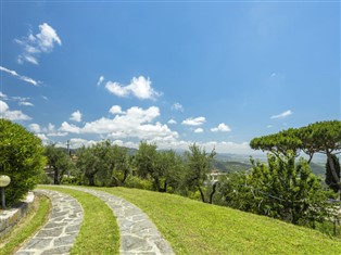 Schönes Einfamilienhaus "Agave", 200 m.ü.M.. 300 m vom Zentrum von Corsanico, 9 km vom Zentrum von Viareggio, 29 km vom Zentrum von Pisa, sonnige, erhöhte Lage am Hang, 12 km vom Meer, 12 km vom Strand. Zur Alleinbenutzung: terrassierter Garten, 5 000 m2 (eingezäunt) mit Pflanzen und Bäumen, Obstgarten, Schwimmbad (12 x 5 m, 120 - 150 cm tief, saisonale Verfügbarkeit: 09.Mai. - 19.Sep.). Aussendusche, Terrasse, Poolpflege durch den Besitzer/Gärtner. 150 m lange steile, schmale Zufahrt. Parkplatz auf dem Grundstück. E-Ladestation. Lebensmittelgeschäft, Bushaltestelle 300 m, Bahnstation "Viareggio" 10 km, Sandstrand "Lido di Camaiore" 12.5 km.