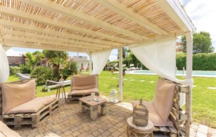 Aussenausstattung: Sichtgeschütztes Grundstück, Gartenmöbel, Carport a.d. Grund/kostenlos 2 Plätze, Grill, Privater Aussenpool 40 m², Aussendusche 1