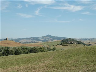 Vom Ferienbauernhof hat man einen schönen Blick auf das Val D Orcia. Das Gebiet ist eine schöne Hügellandschaft und ist bekannt für seine gute Küche und guten Wein bekannt.