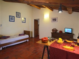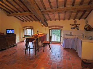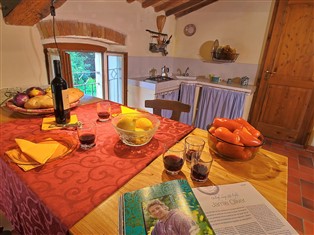 Die Ferienwohnung liegt in der zweiten Etage und ist gepflegt eingerichtet. Der Terrakottaboden und die Holzbalkendecke verleihen der Ferienwohnung eine authentische Ausstrahlung. An kühleren Tagen sitzen Sie gemütlich zusammen in der attraktiven, geräumigen Wohnküche rund um den offenen Kamin mit dem knisternden Feuer. Mitten in der Küche steht auch eine moderner Allesbrenner, der mit Mais befeuert wird. Vor dem Haus haben Sie die Möglichkeit draußen zu sitzen und die Aussicht über die wunderschöne umbrische Landschaft zu genießen. Aber Sie können sich natürlich auch ein Plätzchen am Pool suchen!