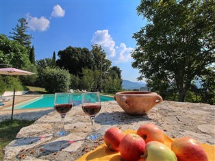 Diese geräumige Ferienwohnung befindet sich in einem alten Bauernhaus auf einem Landgut mit einem Pool, gelegen in den grünen Hügeln Umbriens, in der Nähe von Umbertide. Auf dem Landgut, das bereits seit mehr als 250 Jahren im Besitz einer Adelsfamilie ist, wird bereits seit Menschengedenken Wein angebaut.
