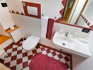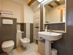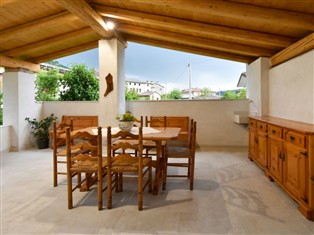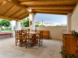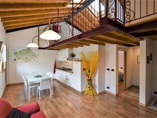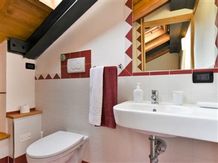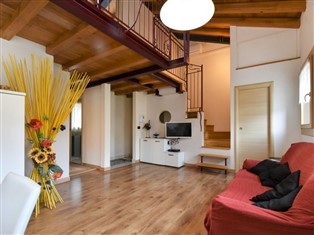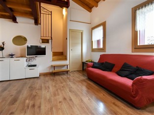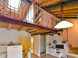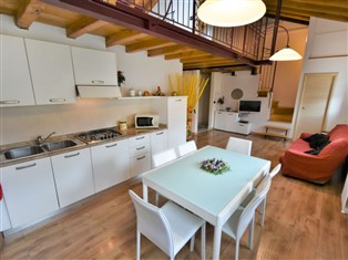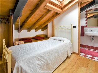 "Gustet Quadri 5", 4-Zimmer-Wohnung 80 m² auf 2 Stockwerken im 1. Stock. Geräumig und hell, teilweise abgeschrägt, zweckmässig und komfortabel eingerichtet: grosses Wohn-/Esszimmer mit Esstisch und TV (Flachbildschirm). Ausgang zum Garten. 1 Doppelzimmer. Kochnische (4 Flammen, Toaster, Wasserkocher, Mikrowelle, Tiefkühler). Dusche/Bidet/WC. Obergeschoss: offene Galerie mit Dachfenster mit 2 Betten. 1 abgeschrägtes Zimmer mit Dachfenster mit 1 Bett und sep. WC. Heizung, Klimaanlage (extra). Parkettböden. Terrassenmöbel, Liegestühle. Zur Verfügung: Waschmaschine, Haartrockner. Internet (Wireless LAN, gratis). Bitte beachten: Nichtraucher-Haus. CIR: M0260420010