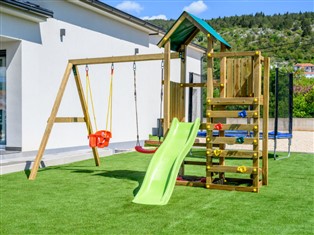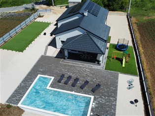 Donji Proložac 10 km von Imotski: Einfamilienhaus "Rest for the soul", auf 2 Stockwerken, Baujahr 2021, umgeben von Weinbergen. 650 m vom Zentrum von Donji Proložac, ruhige, sonnige Lage, 30 km vom Meer. Zur Alleinbenutzung: Grundstück 1 600 m2 (eingezäunt), Schwimmbad eckig, beheizt (10 x 4 m, 150 cm tief, saisonale Verfügbarkeit: 01.Jun. - 01.Okt.). Grill, Kinderspielplatz. Im Hause: Internetzugang, Trampolin, Waschmaschine, Wäschetrockner. Parkplatz (für 3 Autos) beim Haus auf dem Grundstück. Supermarkt 650 m, Restaurant 2 km, Kieselstrand 30 km. Bekannte Seen in der Umgebung sind gut erreichbar: Modro jezero 5 km. Bitte beachten: Flugplatz 100 km vom Haus.