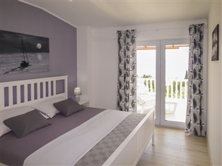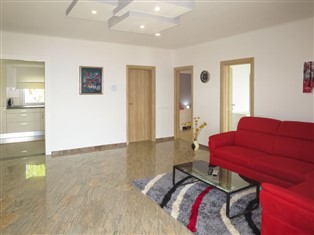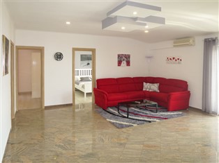 "Andrijana (SRD401)", 3-Zimmer-Wohnung 80 m² im 1. Stock. Wohn-/Esszimmer mit 1 Doppeldiwanbett (120 cm, Länge 200 cm), Sat-TV und Klimaanlage. Ausgang zum Balkon. 1 Zimmer mit 1 franz. Bett (180 cm, Länge 200 cm). Ausgang zum Balkon. 1 Zimmer mit 1 Doppelbett (2 x 90 cm, Länge 200 cm). Offene Küche (4 Kochplatten, Backofen, Geschirrspüler, Toaster, Wasserkocher, Tiefkühler, elektrische Kaffeemaschine). Dusche/WC. Keine Heizmöglichkeit. Balkon 30 m². Balkonmöbel, Liegestühle (2). Sicht auf das Meer. Zur Verfügung: Internet (Wireless LAN, gratis). Bitte beachten: Nichtraucher-Haus.