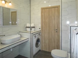 Klimaanlage, Balkon, Baden am Meer, Grill, Radwanderwege, Geschirrspüler, Doppelt verglaste Fenster, Elektrische Kaffeemaschine, Gartenzaun, Tiefkühler, Garten, Bergwanderwege, Wanderwege, Internetzugang, LED-Lampen, Kein Einweggeschirr, Haustiere nicht erlaubt, Herd, Parken, Terrasse, Öffentlicher Nahverkehr, Recyclingstation, Ruhe und Entspannung Sommer, Seeblick, Dusche, TV, internetionales TV, Waschmaschine, Wassersparende Toiletten, WLAN