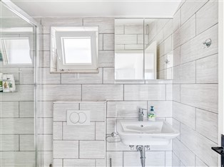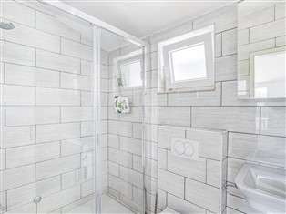 In der 1. Etage: (Schlafzimmer (Doppelbett, Balkon oder Terrasse, Klimaanlage), Schlafzimmer (Schlafcouch 1 Pers., Doppelbett (140 x 200 cm), Klimaanlage), Badezimmer (Dusche, Waschbecken, Toilette))