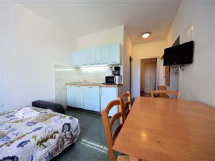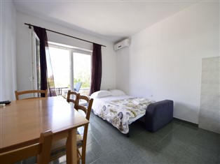 "Katarina 1", 2-Zimmer-Wohnung 40 m², im erhöhten Erdgeschoss. Wohn-/Esszimmer mit 1 Doppeldiwanbett und Sat-TV (Flachbildschirm), Klimaanlage. Ausgang zur Terrasse. 1 Zimmer mit 1 Doppelbett. Offene Küche (2 Glaskeramikherd Platten, Toaster, Wasserkocher, Mikrowelle, elektrische Kaffeemaschine). Dusche/WC. Keine Heizmöglichkeit. Terrasse überdacht. Terrassenmöbel. Zur Verfügung: Internet (Wireless LAN, gratis). Parkplatz (1 Auto). Bitte beachten: eigener Eingang.