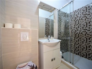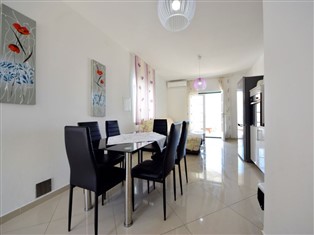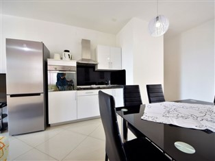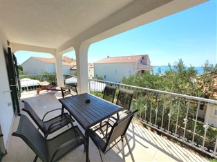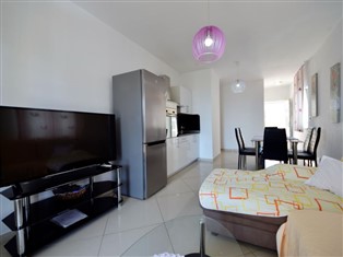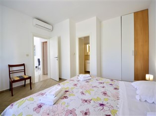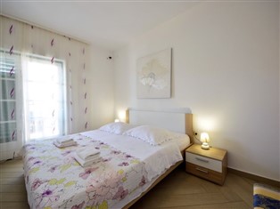 "Katarina 5", 4-Zimmer-Wohnung 80 m² im 1. Stock. Wohn-/Esszimmer mit Sat-TV (Flachbildschirm), Klimaanlage. Ausgang zum Balkon. 1 Zimmer mit 1 Doppelbett und Dusche/WC. Ausgang zum Balkon. 1 Zimmer mit 1 Doppelbett und Dusche/WC. 1 Zimmer mit 1 x 2 Etagenbetten. Offene Küche (Backofen, 2 Glaskeramikherd Platten, Toaster, Wasserkocher, Tiefkühler, elektrische Kaffeemaschine). Sep. WC. Keine Heizmöglichkeit. Balkon. Balkonmöbel, Liegestühle (2). Sicht auf das Meer. Zur Verfügung: Internet (Wireless LAN, gratis). Parkplatz (2 Autos).