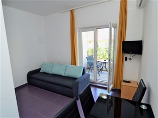 "Katarina 4", 2-Zimmer-Wohnung 40 m², im Erdgeschoss. Wohn-/Esszimmer mit 1 Doppeldiwanbett und Sat-TV (Flachbildschirm), Klimaanlage. Ausgang zur Terrasse. 1 Zimmer mit 1 Doppelbett. Offene Küche (2 Glaskeramikherd Platten, Toaster, Wasserkocher, elektrische Kaffeemaschine). Dusche/WC. Keine Heizmöglichkeit. Terrasse teilweise überdacht. Terrassenmöbel, Liegestühle (1). Zur Verfügung: Internet (Wireless LAN, gratis). Parkplatz (1 Auto). Bitte beachten: eigener Eingang.