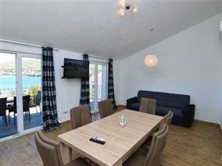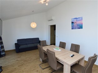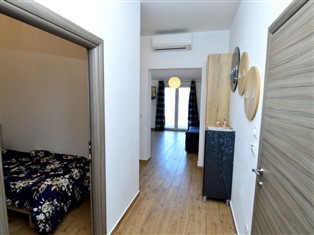 3-Zimmer-Wohnung 60 m² im 1. Stock. Wohn-/Esszimmer mit 1 Doppeldiwanbett (160 cm), Sat-TV (Flachbildschirm), Klimaanlage. Ausgang zum Balkon. Eingang mit Klimaanlage. 1 Zimmer mit 1 franz. Bett (180 cm, Länge 200 cm). 1 Zimmer mit 2 Betten. Offene Küche (Backofen, Geschirrspüler, 4 Glaskeramikherd Platten, Toaster, Wasserkocher, Tiefkühler, elektrische Kaffeemaschine). Dusche/WC. Keine Heizmöglichkeit. Balkon. Balkonmöbel. Sicht auf das Meer. Zur Verfügung: Internet (Wireless LAN, gratis). Parkplatz (2 Autos). Bitte beachten: Nichtraucher-Unterkunft.