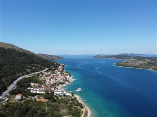 Dreifamilienhaus "Lavanda". Im Ortsteil Šparadici, 2.5 km vom Zentrum von Grebaštica, 8 km vom Zentrum von Primošten, 18 km vom Zentrum von Šibenik, am Hang, 70 m vom Meer, 70 m vom Strand.
